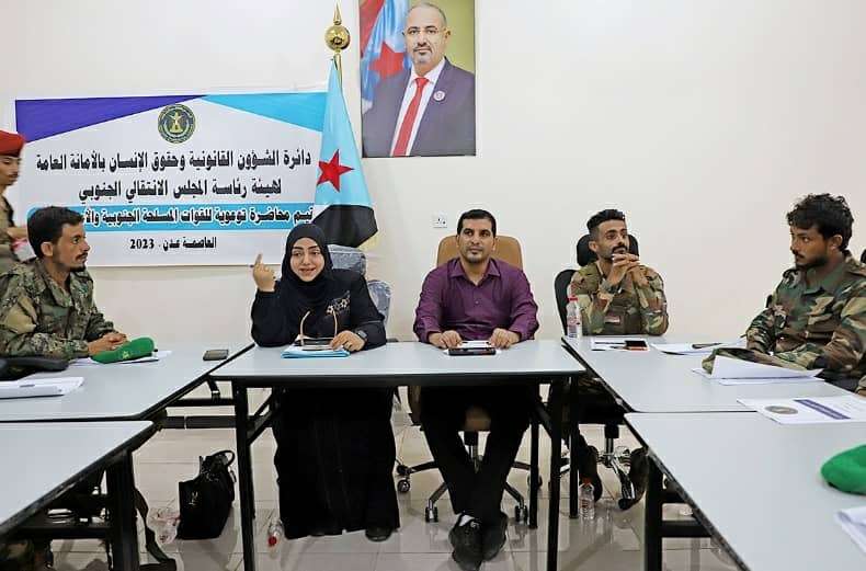 محاضرة توعوية لأفراد قوات الحزام الأمني بالعاصمة عدن