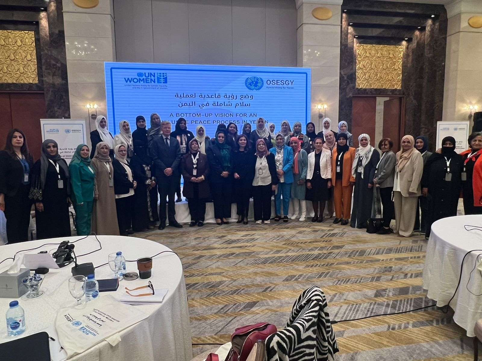 شاركت رئيسة اللجنة الوطنية للمرٲة دكتورة شفيقه سعيد في اللقاء التشاوري حول رؤية قاعدية لعملية السلام باليمن اليوم بالعاصمة الاردنية عمان . وقالت د شفيقة ٲن النساء يلعبن دورًا أساسيًا في بناء السلام ومن المهم اشراك النساء في المفوضات والمشاورت التي تحدد مستقبل اليمن الجديد ، ولابد من حوارات على مستوى القاعدة واشراك كل فئات المجتمع نساء وشباب. مشيدة بجهود النسويات اليمنيات اللاواتي يطمحن الى ٲنهاء النزاع وبناء السلام وبدء مرحلة التعافي مضيفة لن تنجح الجهود الا بنشر ثقافة السلام والتعايش وقبول الاخر ونبذ خطاب العنف والكراهية وتعزيز آليات التفاهم والحوار. وينضم مكتب المبعوث الأممي الخاص إلى اليمن (OSE_Yemen)، وبالتعاون مع هيئة الأمم المتحدة للمرأة (UN Women)، الاجتماع التشاوري الذي يضم نطاق واسع من المجموعات النسائية بما فيهن الفاعلات في المجال السياسي. ويعد هذا الاجتماع التشاوري هو الأول، وسيستمر خلال الفترة بين (19 - 21) نوفمبر الجاري، ويهدف إلى تطوير رؤية قاعدية لعملية سلام شاملة في البلاد. يأتي هذا الاجتماع في إطار سلسلة من المشاورات مع مختلف المكونات والفعاليات اليمنية من أجل تقديم مقترحات ورؤى لعملية سلام شاملة ومستدامة في اليمن التي تعاني من الحرب منذ نحو تسع سنوات . .