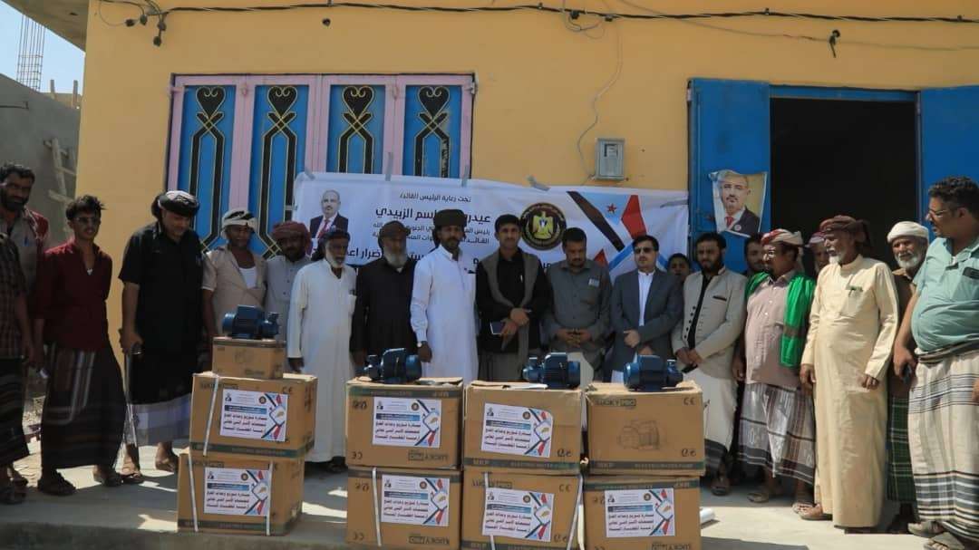 انتقالي المهرة يوزع وحدات ضخ المياه لمتضرري إعصار "تيج" بمديرية حصوين