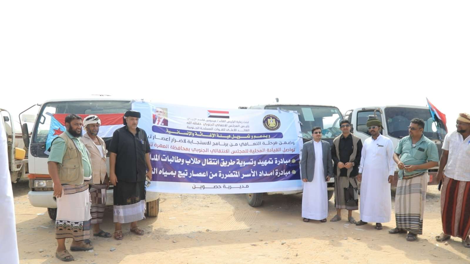 دشن رئيس القيادة المحلية للمجلس الانتقالي الجنوبي محافظة المهرة مجاهد بن عفرار بمعية رئيس دائرة الإعلام والثقافة بالأمانة العامة لهيئة رئاسة المجلس الانتقالي الجنوبي الدكتور باسم منصور الحوشبي وعددا من قيادة السلطة المحلية وقيادةانتقالي حصوين مبادرة توزيع مياة الشرب للاسر المتضررة من اعصار تيج . وتهدف المبادرة الى توفير مياة الشرب النقية للاسر المتضررة من اعصار تيج بمديرية بعد توقف مشروع المياة بالمديرية وجرف السيول لشبكة المياة ، كما تهدف الى تخفيف الاعباء عن المواطنين وتجنب الامراض التي قد تنتج عن مخلفات الاعصار وتلوث حقول المياة. كما تم تدشين مبادرة تسوية الطرق المودية الى المدارس التعليمية بالمديرية وذلك لتسهيل تنقل الطلاب والمعلمين الى تلك المدارس و الاسهام في استمرار العملية التعليمية وتطبيع الحياة بالمديرية. يذكر ان المجلس دشن امس مبادرة توزيع مضخات المياة للتجمعات السكنية للمتضررين بالاضافة الى إسهاماته السابقة توفير اكثر من 80 وايت من مياة الغسل لأبناء المديرية. حضر التدشين رئيس نتفيذية انتقالي مديرية حصوين علي عويض شوم عدداً من أعضاء تنفيذية انتقالي المحافظة.