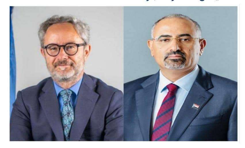 الرئيس الزُبيدي يناقش مع رئيس بعثة الاتحاد الأوروبي سبل السلام ومسار العملية السياسية في بلادنا