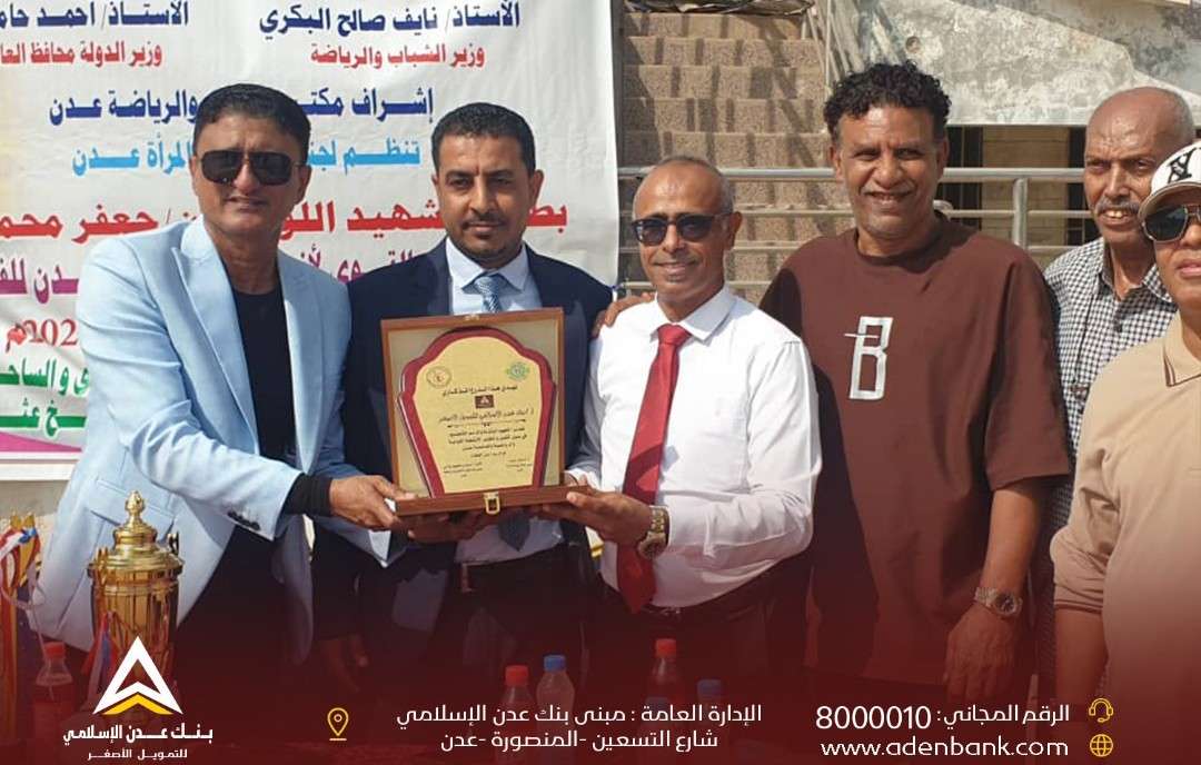 كرم كلا من مكتب الشباب والرياضة في العاصمة عدن، ولجنة رياضة المرأة، بنك عدن الإسلامي للتمويل الأصغر وذلك نظر جهوده في دعم الرياضة. وقام مدير مكتب الشباب والرياضة بالعاصمة عدن الكابتن وجدان الشاذلي، وممثل عن لجنة رياضة المرأة بعدن، بتسليم بنك عدن الإسلامي للتمويل الأصغر درع تذكاري تكريماً لجهودهم المبذولة والدعم اللامحدود في تفعيل وتنشيط الرياضة بالعاصمة عدن. ومثل البنك في التكريم الاستاذ صلاح سيف الدين باهارون مدير العلاقات العامة، الاستاذ بكيل البسيسي نائب مدير ادارة الفروع. الجدير بالذكر أن بنك عدن الإسلامي للتمويل الأصغر وإلى جانب خدماته المصرفية والمالية، وتسهيل تقديمها للمواطنين، يهتم بدعم الكثير من المبادرات المجتمعية والانشطة الشبابية في مختلف المجالات بما فيها الرياضة.