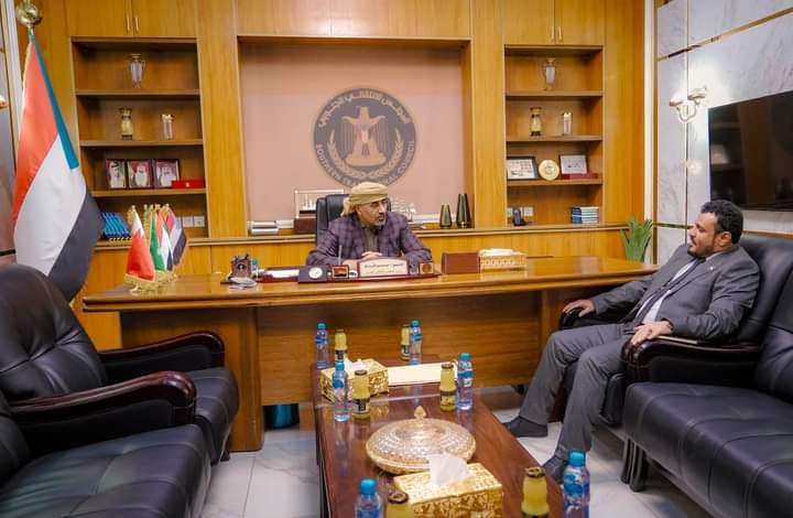 الرئيس الزُبيدي يلتقي رئيس انتقالي شبوة ويطّلع منه على آخر المستجدات بالمحافظة