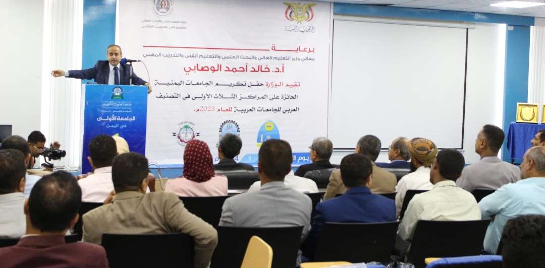وزارة التعليم العالي تحتفي بالجامعات اليمنية الحاصلة على المراكز الثلاث الأولى في تصنيف اتحاد الجامعات العربية للعام ٢٠٢٣م.
