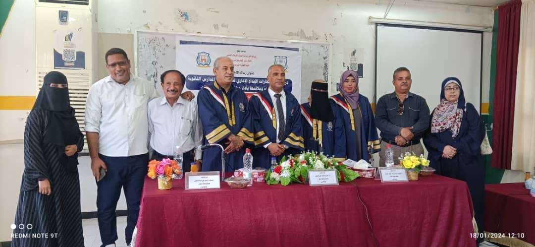 تم أمس الخميس في رحاب كلية صبر للعلوم والتربية المناقشة العلنية لرسالة الماجستير المقدمة من الباحثة / مرفت إبراهيم أحمد إبراهيم الموسومة بعنوان " درجة توافر مهارات الابداع الإداري لدى مديري المدارس الثانوية الحكومية وعلاقتها بأداء مهامهم في العاصمة عدن". حيث تكونت لجنة المناقشة من أ.د عادل عبدالمجيد العبادي رئيساً ومناقشا خارجيا جامعة عدن أ.مشارك .د حسين علي عبدالله الطفي عضواً ومناقشا داخليا جامعة لحج أ.مشارك.د ياسمين محمد باغريب عضواً ومشرفا علمياً جامعة عدن. كما حضر المناقشة عميد كلية صبر للعلوم والتربية أ.د عبدالفتاح الشعيبي ود. ندى المحرمي رئيسة قسم العلوم التربوية ود. اوسيم عطأ ود. وهبية شاهر د. جميل الراهشي ود. حسين العاقل وزملاء وزميلات الباحثة وجميع أهل الباحثة. وعلى أثر تلك الرسالة نالت الباحثة مرفت ابراهيم على درجة الماجستير بتقدير امتياز وأعجب بتلك الرسالة كافة الحاضرين ولجنة المنافشة