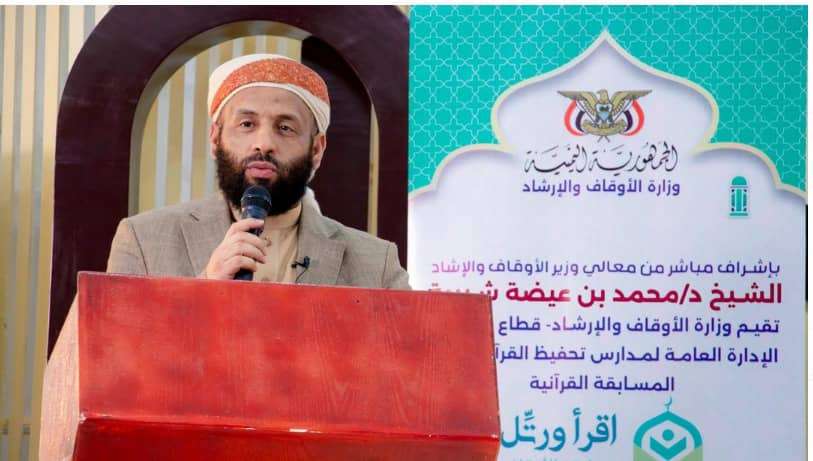 دشن وزير الأوقاف والإرشاد الشيخ محمد بن عيضة شبيبة، صباح اليوم، بالعاصمة الجنوبية عدن، التصفيات النهائية للمسابقة الرمضانية القرانية الكبرى “اقرأ ورتّل” التي تقيمها وزارة الأوقاف والإرشاد؛ لدعم وتشجيع حفظ القرآن الكريم على امتداد محافظات الجمهورية، وستبث في القنوات الفضائية والإذاعات المحلية خلال شهر رمضان المبارك. وفي كلمته بمناسبة تدشين مرحلة التصفيات النهائية للمسابقة، أكد معالي الوزير على أهمية حفظ القرآن الكريم ومكانة الحفاظ في الدارين، مستدلًا بأن النبي صلى الله عليه وسلم قدمهم على بقية المسلمين في أكثر من موقف. وحذر وزير الأوقاف من استمرار استهداف المليشيات الحوثية الإرهابية المدعومة إيرانيًا للقران الكريم وإفراغه من محتواه ويظهر ذلك من خلال اتخاذهم لزعيمهم قرينًا للقرآن أي مساويًا للقران، وقال : “لم يتوقفوا هنا بل زادوا في تعظيمه درجة وحطوا من مكانة القرآن الكريم في مقابله درجات، فحينما تساوي القرآن الكريم بشخصٍ بليدٍ غبي مجرمٍ قاتلٍ أنت توجه إهانة للقرآن الكريم وتنزع القرآن وهيبته من الناس وتجعلها لهذا الذي تزعم أنه قرين القرآن، بل زادو على ذلك بأن وصفوه قرانًا ناطقًا! ، بل قالوا في القرآن الكريم أنه عمى مالم يوافق تفسير قاداتهم الإرهابيين والمجرمين، كل هذه المحاولات تقوم به المليشيات الحوثية لاستهداف القرآن الكريم _ولن تسطيع بإذن الله _ فقد تكفل الله بحفظه. وخاطب المتسابقين أنهم خير من اختارهم الله لحفظ كتابه مستدلًا بقول النبي صلى الله عليه وسلم “خيركم من تعلم القرآن وعلمه ” مشيدًا بما قدمه ممثلو اليمن في المسابقات الدولية ورفعهم أسم اليمن عاليًا في كل المنصات الدولية، مؤكدًا استمرار دعمه ورعايته لكل المتسابقين في كل المجالات.