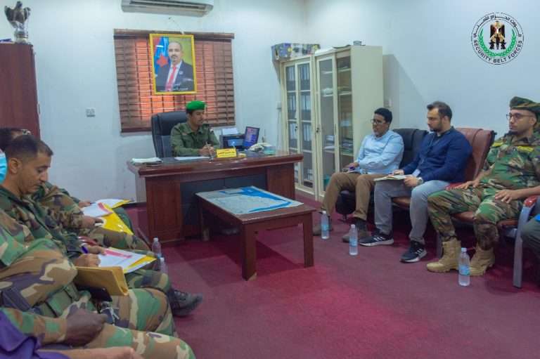 العميد الحوشبي يستقبل مدير مكتب منظمة نداء جنيف ويُشيد بدورها في تدريب منتسبيّ الحزام الامني