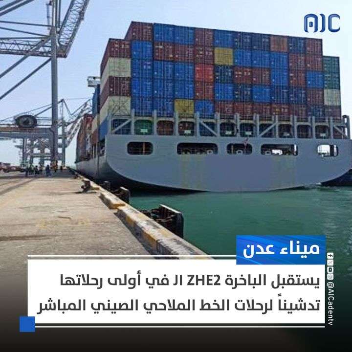ميناء عدن يستقبل الباخرة JI ZHE2 في أولى رحلاتها، تدشيناً لرحلات الخط الملاحي الصيني المباشر