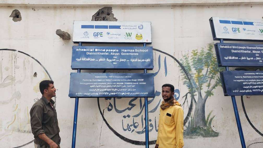 بدعم من البنك الدولي والشراكة العالمية للتعليم عبر اليونيسيف وضمن مشروع استعادة التعلم والتعليم، وتنفيذ الاشغال العامة بالتعاون مع وزارة التربية والتعليم، انتهت الأعمال التأهيلية لمدرستي الحمزة بنين والخنساء بنات بجعار. وقال مقاول المشروع عارف القسيمي: ان الأعمال التأهيلية لتلك المدارس قد انجزت بنسبة 100%. واليوم الاثنين تمت عملية الاستلام والتسليم للمدارس لاداراتها المدرسية. مضيفاً ان الأعمال التأهيلية تضمنت تأهيل عدداً من الفصول الدراسية من توريد وتركيب سبورات فيبر جلاس وتوريد وتركيب ومفاقدة ابواب حديد ونوافذ وتوريد وتركيب اجهزة إنارة فلورست 2،51 وات ومراوح سقف وترميم الدرج ودرج السلم ومفاقدة للحمامات. ومضيفاً الى انه تم تجديد دهان زيتي للفصول الدراسية وتوريد وغرس شتلات اشجار للبيئة المدرسية. ومن جانبه شكر مدير مدرسة الحمزة الاستاذ حسين مهدي العولقي جميع الجهات التي سعت ودعمت لمثل هذه الاعمال التي تساعد على استعادة التعليم والتعلم بمدارسة المديرية.