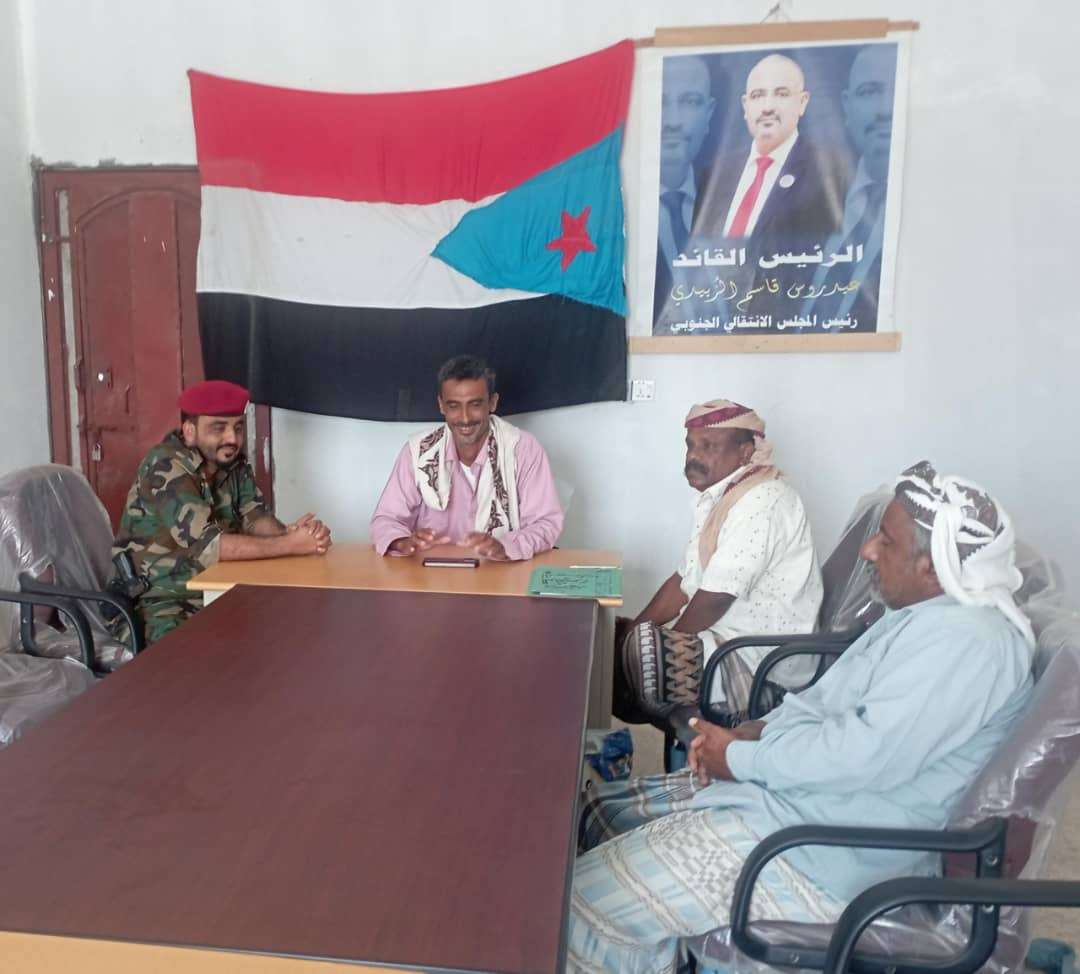 رئيس انتقالي أحور يناقش مع قائد الحزام الأمني أهمية حماية المرافق والمؤسسات التي تخدم أبناء المديرية