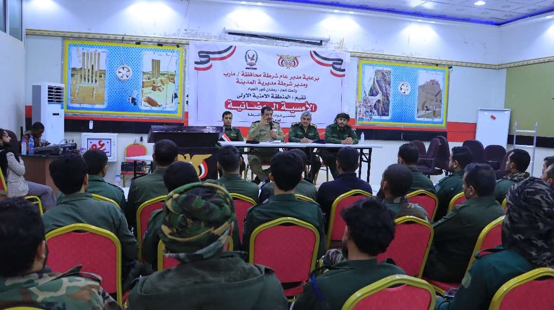برعاية مديرعام شرطة محافظة مأرب العميد /يحيى حُميد نظمت المنطقة الأمنية الأولى بمدينة مأرب اليوم أمسية رمضانية لمنتسبيها وفي الأمسية القاء مدير المنطقة الأمنية الأولى العقيد عبدالرحمن شبين كلمه ترحيبيه رحب فيها بالحاضرين ومشيداً بدور الوحدات الأمنية واقسام الشرطة على دورهم الكبير في خدمة المواطنين وحفظ الأمن والاستقرار بمدينة مأرب خلال شهر رمضان المبارك وتنظيم شؤون المواطنين في الاسواق والمحلات التجارية بحسب الخطة الأمنية لشهر رمضان المبارك من جهة اخرى القاء العميد توفيق عبيد كلمة تطرق فيها الى الصفات التي يجب على رجل الأمن التمتع بها واصفاً رجال الأمن بالعيون الساهرة التي تحرس الممتلكات الخاصة والعامة وان المواطنين بمحافظة مأرب يشعرون فيها بالأمن والاستقرار بفضل الله ثم بسواعد رجال الأمن الأوفياء شكرا الجهود التي تبذلها القيادات الأمنية ممثلة بمدير عام شرطة محافظة مأرب العميد يحيى علي حُميد ورجال الأمن البواسل في حفظ الأمن والاستقرار بالمحافظة كما تطرق الدكتور محمد الرويشان في كلمتة التوعوية الى التعامل الذي يجب على رجل الأمن الظهور به في تعامله مع المواطنين أثناء اداء مهامهم الأمنية وقال أننا نحمد الله على نعمة الأمن وهذا بفضل اللَّٰه ثم بفضل رجال الأمن العظماء وتخلل الامسية فقرات قصايد شعرية واناشيد وطنية حماسيه شارك بها افراد التوجيه المعنوي بالمنطقه الامنيه الاولى