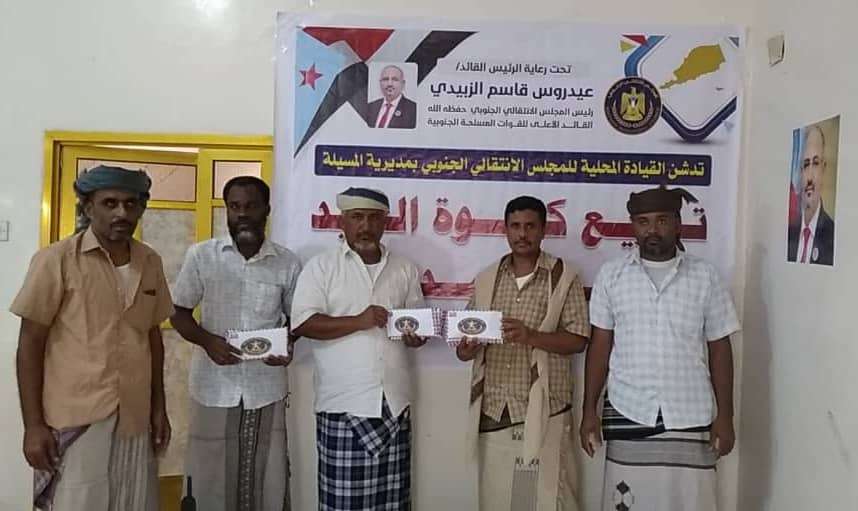برعاية الرئيس القائد عيدروس بن قاسم الزُبيدي رئيس المجلس الانتقالي الجنوبي ، دشنت الهيئة التنفيذية لانتقالي مديرية المسيلة توزيع مبلغ نقدية لشراء كسوة العيد للنساء الأرامل بالمديرية . وفي فعالية التدشين ، أوضح الأخ / حسن عمر باعباد رئيس الهيئة التنفيذية لانتقالي المسيلة أن الهيئة حرصت على أن تصل المكرمة إلى النساء الأرامل بالمديرية . واشاد باعباد بالرعاية والإهتمام الذي يوليه القائد عيدروس بن قاسم الزُبيدي رئيس المجلس الانتقالي بدعم الأسر المتعففة والسعي في التخفيف من معاناتهم في ظل الظروف الحالية التي تمر بها البلاد ، كما قدم شكرة للهيئة التنفيذية لانتقالي المهرة على جهودهم المتواصلة في متابعة تنفيذ هذه المشاريع والأنشطة وتذليل الصعوبات والمعوقات .
