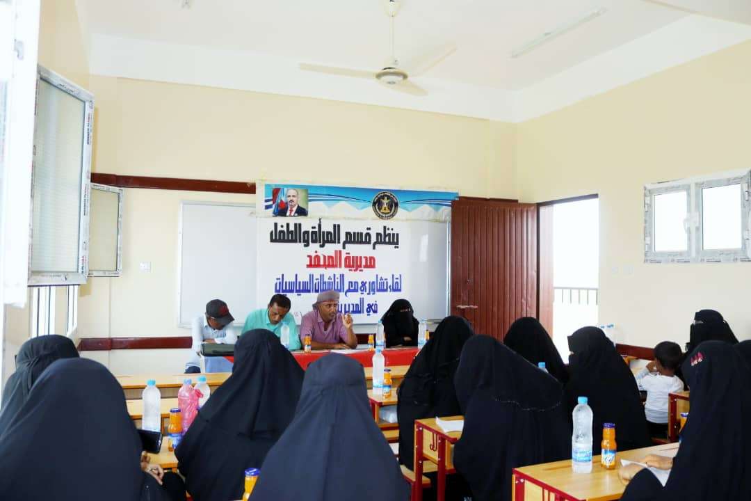 المرأة والطفل بانتقالي المحفد تنظّم لقاء تشاورياً مع عدد من الناشطات بالمديرية