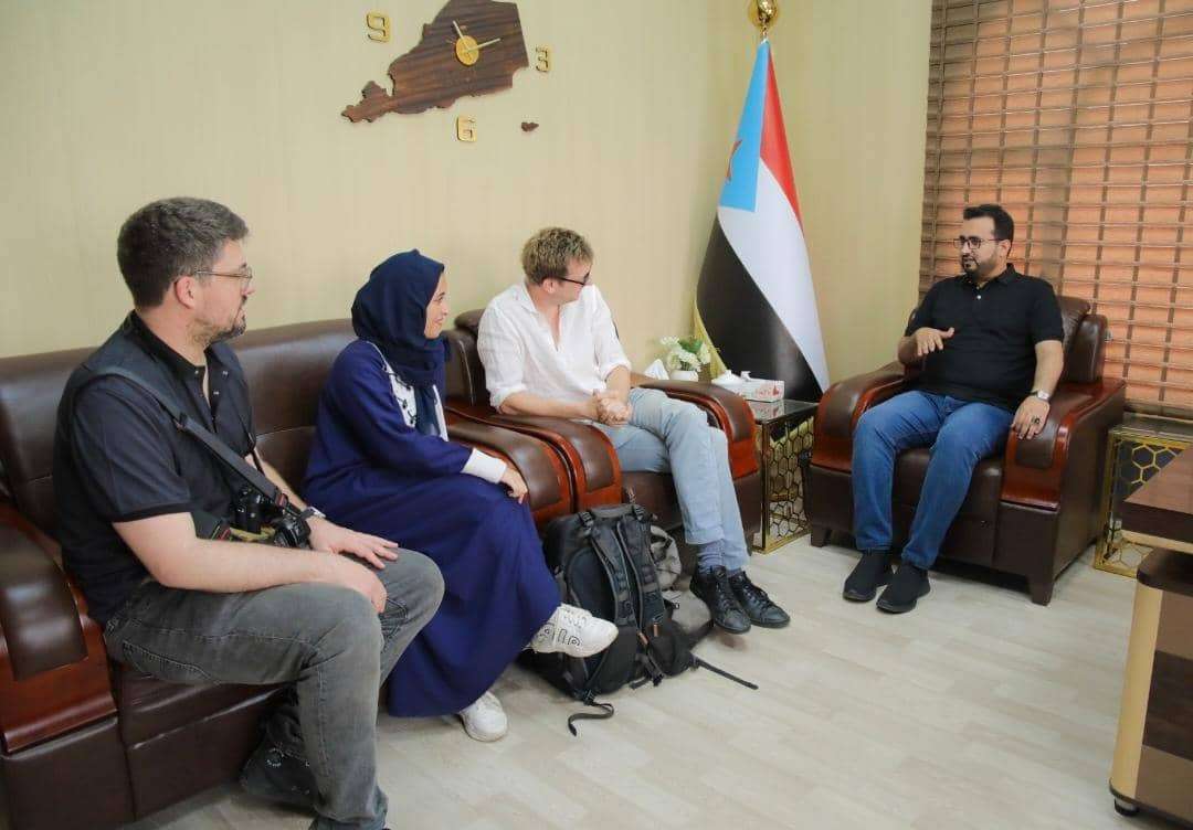 التقى سالم ثابت العولقي رئيس الهيئة الوطنية للإعلام المتحدث الرسمي باسم المجلس الانتقالي الجنوبي اليوم بمكتبه في العاصمة عدن الفريق الإعلامي السويسري المكون من الصحفي دانييل سيمون بوخم والمصور دومينيك ويذر. و رحب العولقي بالفريق الاعلامي الزائر للاطلاع على تاريخ عدن الحضاري والثقافي والمدني الى جانب التعرف على الوضع الحالي في العاصمة عدن وبقية محافظات الجنوب ومتابعة جهود الأمن والاستقرار وتطبيع الأوضاع رغم الظروف الاستثنائية الي تمر بها البلاد، مؤملا نقل الصورة الإيجابية لما يعتمل في الجنوب في مختلف الجوانب السياسية والأمنية والاقتصادية. ورداً على أسئلة الفريق الإعلامي استعرض العولقي تاريخ الجنوب منذ الاستعمار البريطاني حتى قيام دولة الجنوب المستقلة في ٣٠ نوفمبر ١٩٦٧م وتجربة دولة الجنوب وما تلاها من وحدة في عام ١٩٩٠م مع اليمن الشمالي ، مشيرا إلى التاريخ السياسي والحضاري والثقافي والإنساني الكبير لعدن وحضرموت وكل محافظات الجنوب. واضاف العولقي : نتطلع إلى قيام دولتنا المدنية الفيدرالية الحديثة التى تكفل الحقوق والحريات والديقراطية والتنوع والعدالة في السلطة والثروة والمواطنة المتساوية بنظام فيدرالي ونسعى إلى تحقيق هذا الهدف بكل الوسائل السلمية. وحول الوضع في البلاد أشار العولقي أن مليشيا الحوثي الارهابية مازالت تواصل أعمالها الإجرامية في مناطق سيطرتها وعلى حدود الجنوب وتمارس قرصنتها البحرية على الملاحة الدولية ، داعيا الإعلام الاجنبي بأن ينقل الصورة الحقيقة والطبيعة الارهابية لمليشيا الحوثيين من خلال نشر وتوثيق أعمالها الإجرامية المعادية للحريات وحقوق الإنسان وتهديدها للأمن الإقليمي والدولي بسبب أعمال القرصنة في البحر الاحمر واستهداف المنشآت الاقتصادية في الجنوب وما ترتب على ذلك من اوضاع إنسانية واقتصادية صعبة. من جانبه أشاد الوفد الإعلامي السويسري بالتسهيلات التي تقدمها الهيئة الوطنية للإعلام الجنوبي للوفد الإعلامي ، معبرا عن ارتياحه للاستقرار الأمني والحالة المدنية التي تشهدها العاصمة عدن وموضحا طبيعة عمل الفريق الاعلامي الذي يستهدف متابعة التاريخ الحضاري والمدني في عدن و الأوضاع الحالية في الجنوب بعد عشر سنوات من الحرب إلى جانب رصد مغامرات القرصنة في البحر الاحمر التي تسببت فيه مليشيا الحوثي الارهابية .