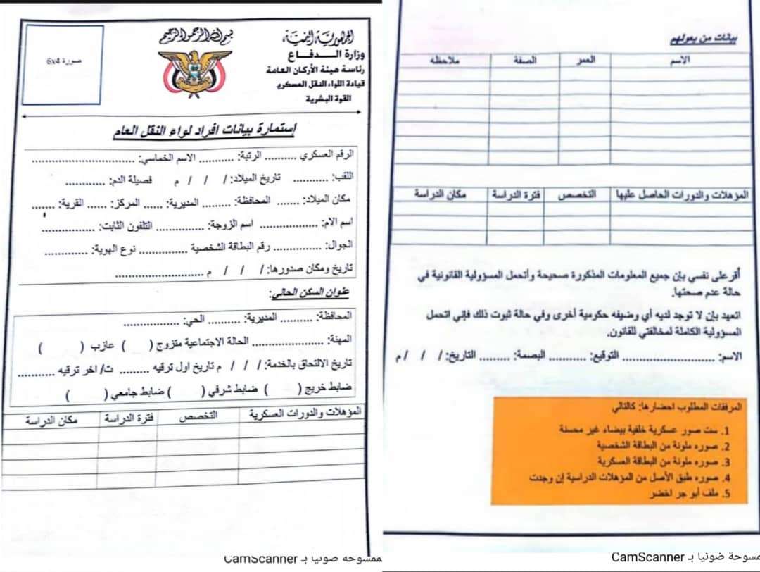 أوضحت إدراة التوجيه المعنوي في لواء النقل العام بشأن صرف ما تبقى من رواتب منتسبيها. وجاء في نص التنويه : بتوجيهات من قائد لواء النقل العام العميد ركن/ احمد يحيى جابر القطيبي " سيتم صرف رواتب ما تبقى منتسبي اللواء لشهر ابريل في معسكر الجوية بالقرب من مستشفى الريادة بمديرية المنصورة ، وذلك من يوم غداً الثلاثاء الساعة الثامنة صباحاً الى الثانية عشرة ظهراً. علما بأنه تم تمديد صرف الرواتب ليوم غداً الثلاثاء كموعد أخير للصرف حرصاً من قيادة اللواء تسلم جميع منتسبي لواء النقل العام رواتبهم. وتهيب قيادة اللواء إلى الالتزام بإحضار البيانات المطلوبة من خلال تعبئة الاستمارة المرفقة ادناه في هذا التنويه.