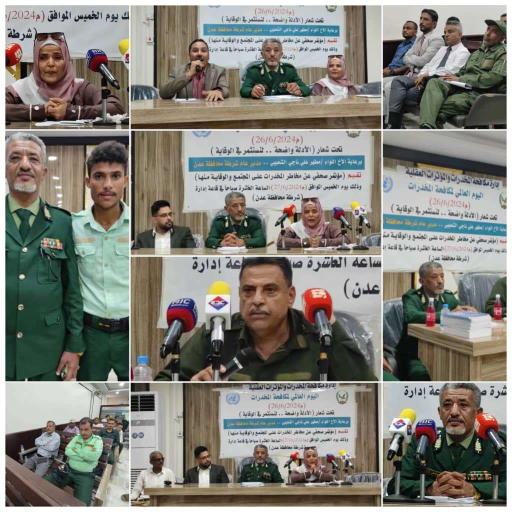 إدارة مكافحة المخدرات تقيم مؤتمر صحفي تحت شعار الأدلة واضحة.. لنستمر في الوقاية