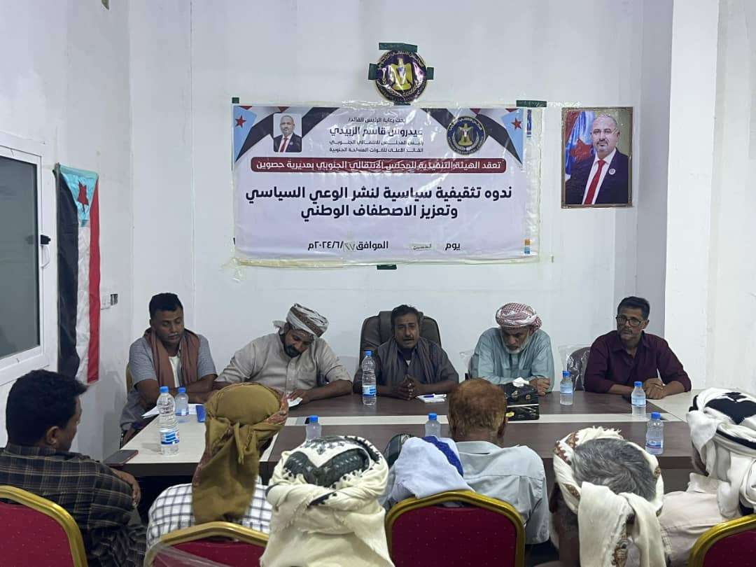 انتقالي حصوين يقيم ندوة لنشر الوعي السياسي وتعزيز الاصطفاف الوطني