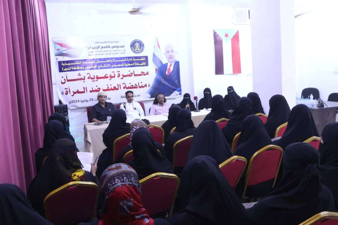 انتقالي المهرة ينظم محاضرة توعوية لمناهضة العنف ضد المرأة .
