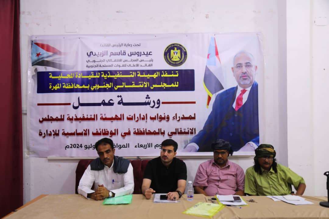 انتقالي المهرة ينظم ورشة عمل حول الوظائف الأساسية للإدارة .