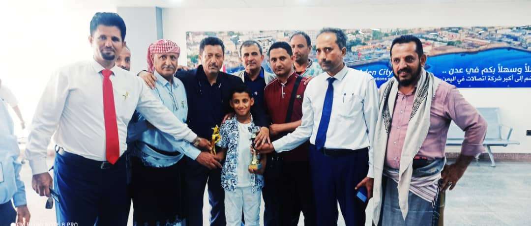 رئيس تنفيذية انتقالي أبين يستقبل العبقري الصغير يسلم وليد في مطار عدن الدولي