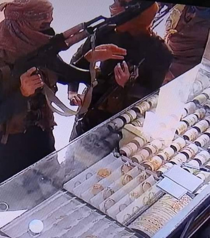 شاهد.. كاميرا مراقبة توثق عملية سطو مسلح على محل ذهب في القطن