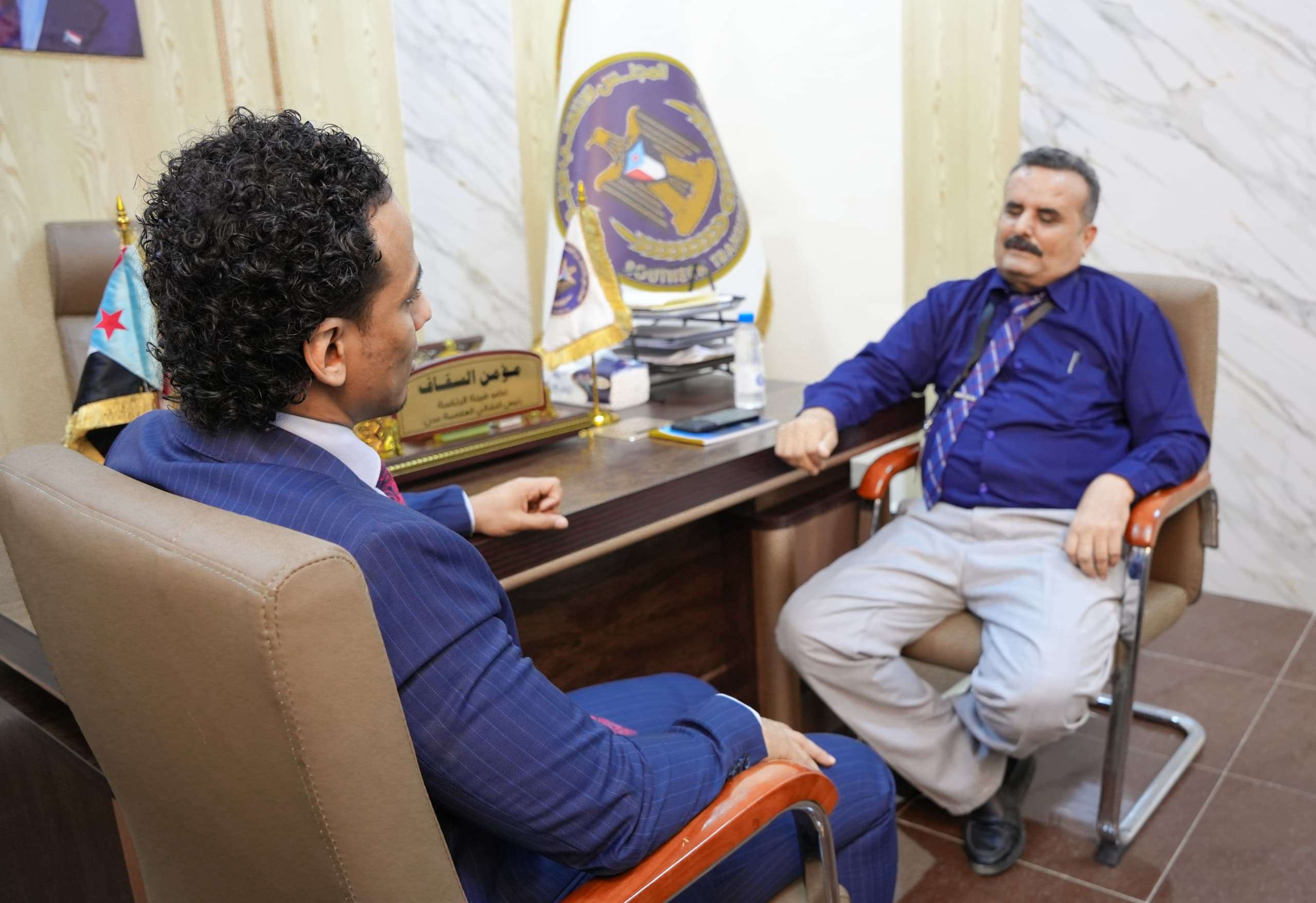التقى الأستاذ مؤمن السقاف، عضو هيئة الرئاسة، رئيس الهيئة التنفيذية للقيادة المحلية للمجلس الانتقالي الجنوبي في العاصمة عدن، اليوم الخميس، في مكتبه، هيثم جابر محسن، المدير العام المساعد للجهات المنتدبة في مطار عدن الدولي. وناقش اللقاء الأوضاع الحالية في مطار عدن الدولي وسبل تحسين الأداء وتطوير الخدمات في المطار الذي يعتبر واجهة سيادية للبلد. وتطرق إلى التحديات التي يواجهها المطار وضرورة توفير الدعم اللازم لتعزيز البنية التحتية وتحسين مستوى الخدمات المقدمة للمسافرين. وأكد السقاف التزام المجلس الانتقالي الجنوبي بتقديم كافة أشكال الدعم والمساندة للمطار لضمان استمرارية العمل بكفاءة عالية، وتلبية احتياجات المسافرين، مشيراً بأهمية مطار عدن الدولي كأحد أهم المرافق الحيوية في البلاد. من جانبه، ثمن هيثم، اهتمام المجلس الانتقالي بتطوير المطار، مؤكداً على أهمية التعاون بين مختلف الجهات لتحقيق الأهداف المشتركة والمساهمة في خدمة الوطن والمواطن.