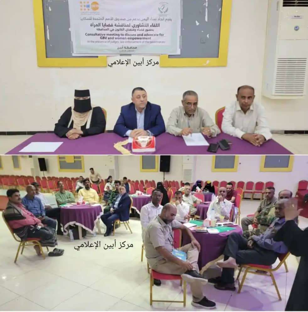 لقاء تشاوري يناقش قضايا المرأة بحضور قضاة ومنفذي القانون بأبين