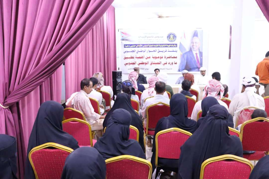 فريق الحوار الوطني الجنوبي وانتقالي المهرة ينظمان محاضرة توعوية عن أهمية تطبيق الميثاق الوطني الجنوبي
