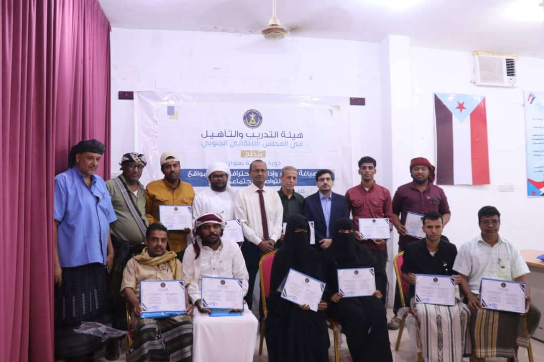 اختتمت هيئة التدريب والتأهيل المساعدة لهيئة رئاسة المجلس الانتقالي الجنوبي، اليوم الخميس، في مدينة الغيضة بمحافظة المهرة، دورة تدريبية في صياغة الأخبار وإدارتها باحترافية على مواقع التواصل الاجتماعي. وفي حفل ختام الدورة، أشار رئيس الهيئة التنفيذية للمجلس الانتقالي بمحافظة المهرة مجاهد بن عفرار، إلى أهمية الدورة في تأهيل وتدريب الكوادر الإعلامية وتعزيز مهاراتهم في صياغة الأخبار ونشرها على مواقع التواصل الاجتماعي. وأشاد بن عفرار، بالجهود الكبيرة التي تبذلها هيئة التدريب والتأهيل في تنظيم الدورات التدريبية والورش العملية، متمنياً لجميع المشاركين الاستفادة من هذه الدورة بشكل كبير وتطبيقها في مجال عملهم اليومي. فيما أعرب الدكتور ماهر الدلعوس رئيس القطاع التنظيمي والإداري في هيئة التدريب والتأهيل، عن سعادته باختتام الدورة التدريبية، التي تعزز الكادر الاعلامي بالهيئة التنفيذية بمحافظة المهرة وفي الإدارات والأقسام الإعلامية بالهيئات التنفيذية في المديريات في مجال صياغة الفنون الصحفية بأسلوب يتواكب مع التقنيات الحديثة التي وصلت إليها المؤسسات الإعلامية ومنصات التواصل الاجتماعي. وفي نهاية الدورة، تم تكريم المدرب الدكتور أديب الشاطري وجميع المشاركين في الدورة.