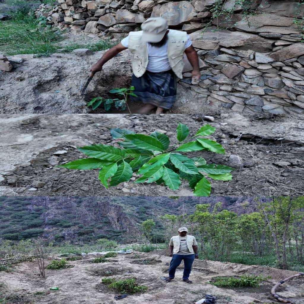 مدير الزراعة والري بمديرية يهر يُدشن غرس (150) شتلة بُن.