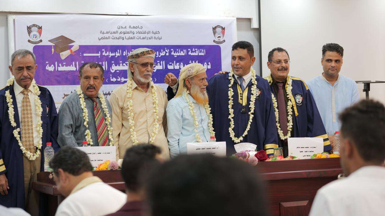 جامعة عدن تمنح الباحث ياسر اليافعي درجة الدكتوراه بامتياز عن دراسته للتجربة المصرية في التنمية المستدامة