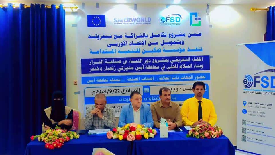بحضور نائب رئيس انتقالي أبين.. زنجبار تشهد اللقاء التعريفي لمشروع تعزيز دور النساء في صناعة القرار وبناء السلام.