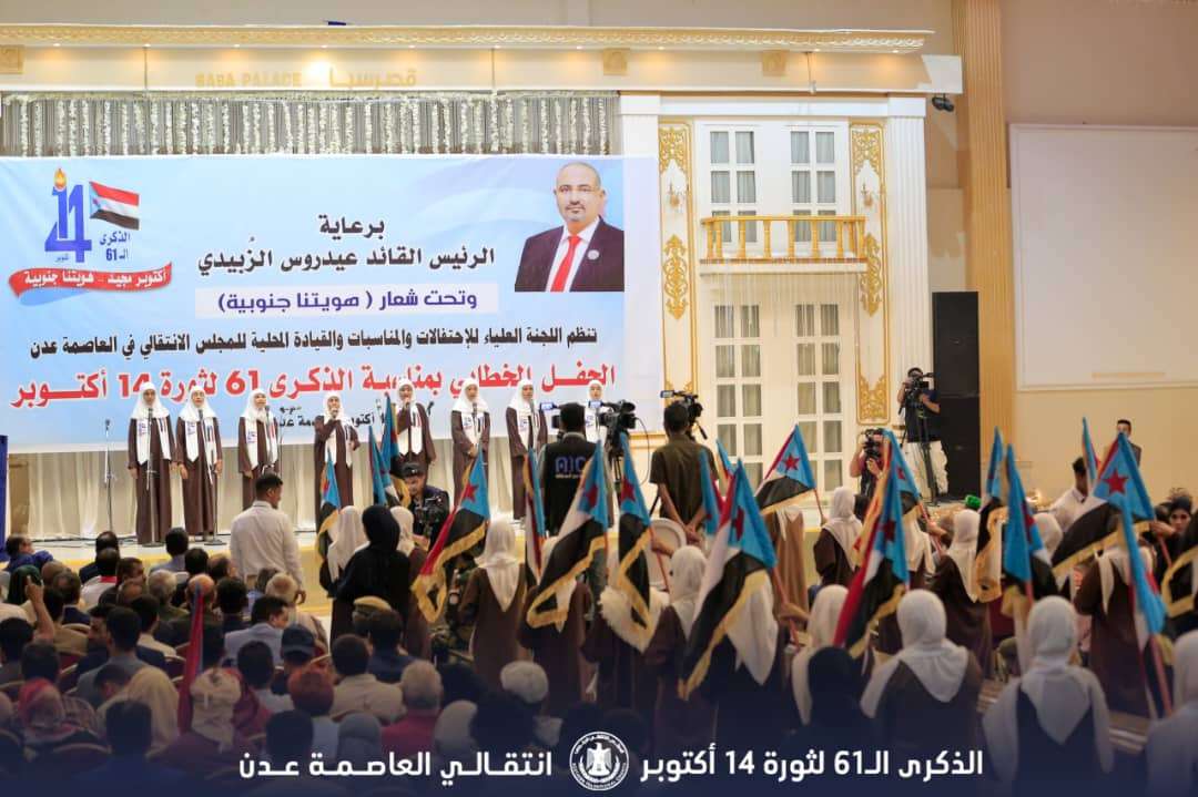 برعاية الرئيس الزُبيدي .. المجلس الانتقالي الجنوبي يحيي ذكرى ثورة 14 أكتوبر المجيدة في العاصمة عدن