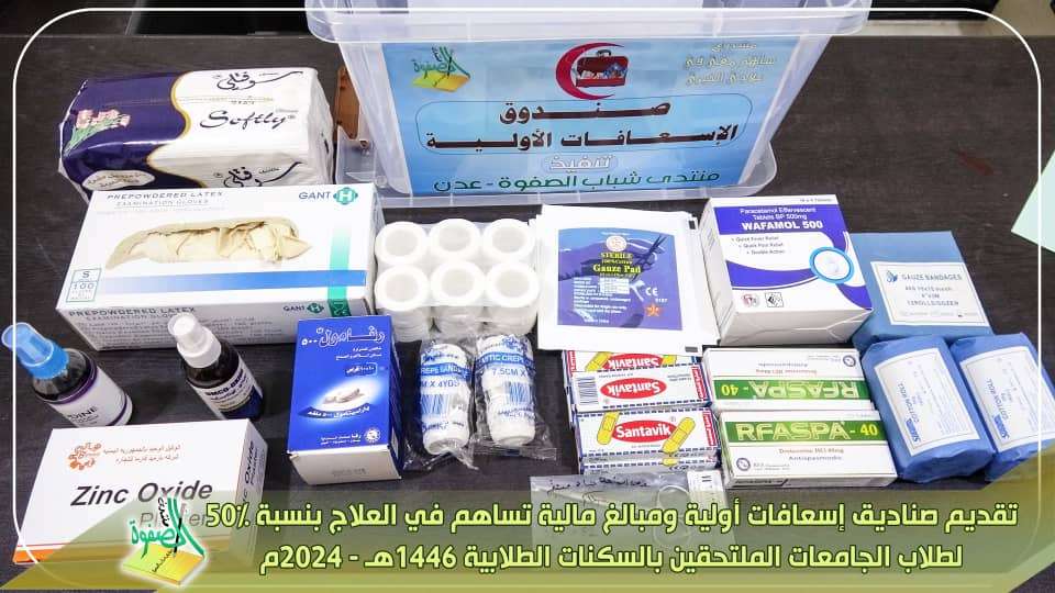 في إطار مشروع ساهم معي في علاجي، استكمل منتدى شباب الصفوة بالعاصمة عدن، تنفيذ برنامج الإسعافات الأولية "المرحلة الأولى"، لطلاب الجامعات الملتحقين بالسكنات الطلابية، وذلك بإتمام القسم الثاني والثالث من البرنامج بتوزيع صناديق اسعافات أولية محتوية على أدوات طبية إسعافية لآزمة، ومبالغ مالية لعلاج الطلاب بقيمة 50% لكل طالب، استفاد منها عدد من السكنات الطلابية المشاركين في البرنامج بكريتر عدن، ومنطقة الممدارة، ومديرية المنصورة. وخلال مراسم التوزيع، عبّر مشرفي السكنات عن شكرهم البالغ وامتنانهم الجزيل لمنتدى الصفوة على هذه البادرة الطبية العظيمة، والتي بدورها ستخفف عن كاهل معاناة المرضى من الطلاب في ظل الظروف الصعبة التي يعيشونها من تكاليف الدراسة الجامعية، آملين بأن يتطور المشروع بتجهيز غرفة طبية اسعافية أولية متكاملة بكل سكن طلابي. الجدير بالذكر: أن برنامج الإسعافات الأولية استمر لمدة عشرة أيام كمرحلة أولى، على أن يسعى المنتدى في تنفيذ مرحلة ثانية من المشروع بإستهداف سكنات طلابية أخرى، عند توفر الدعم المناسب من أهل الخير والإحسان، حيث تضمن ثلاثة أقسام: ١. الدورة التدريبية المكثفة في الإسعافات الأولية لعدد من السكنات الطلابية الجامعية بعدن، والتي أقيمت بقاعة رباط الكعيتي المحضار بالمنصورة، لمدة ثلاثة أيام متتالية، بواقع 12 ساعة تدريبية، للدكتور علي الحنشي، مدرب واستشاري في عدد من المعاهد والجامعات. ٢. تقديم صناديق اسعافات أوليه مجانية، تم وضعها في السكنات الطلابية المشاركة في البرنامج. ٣. تقديم مبلغ مالي، يساهم في علاج الطلاب بنسبة 50% لكل طالب مريض.