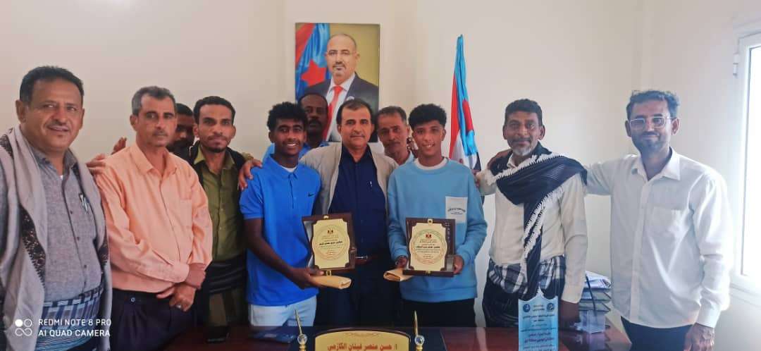 نائب رئيس انتقالي أبين يكرم لاعبي المنتخب الوطني للناشئين كريم حمدي وعصام السقاف