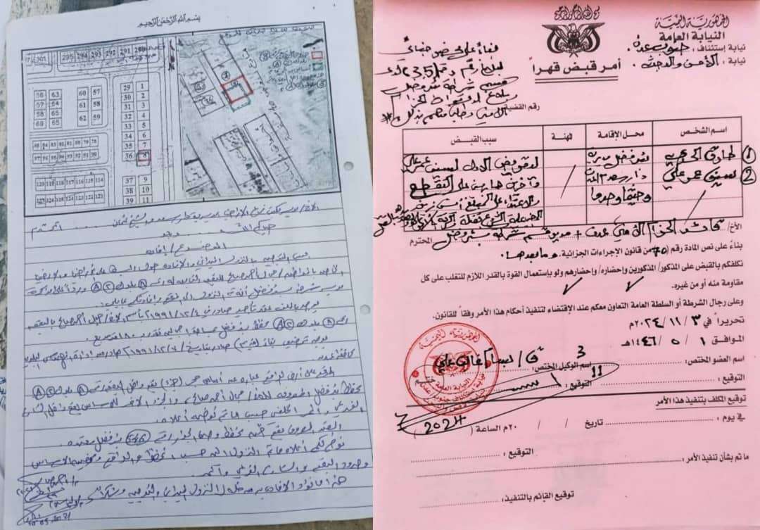 أصدرت النيابة العامة أمر قبض قهر بحق (ط.ال.ح)و(س.ع.ع) بتهمة التقطع والاعتداء والشروع بالقتل على المواطن انيس زين. وبحسب وثيقة أمر القبض القهري " فقد اقدم المتهمين على التقطع للمجني عليه انيس زين واطلاق النار عليه وتهديده بالقتل ، حيث تم تعميم أمر القبض القهري لعملية الضبط لدى قائد الحزام الأمني وشرطة بئر فضل بعدن. وذكرت مصادر خاصة : أن المشكلة تعود إلى اقدام المتهمين الاثنين وآخرون في الاعتداء والتهديد بالقتل بحق انيس زين على إثر بسطهم على أرضه تم إصدار أمر إزالة بها بعد أن تقدم انيس زين بشكوى ضد الباسطين عليها وهم ، كون الأرضية مملوكة لأنيس زين بحسب الوثائق الرسمية التي أصدر على إثرها أمر الإزالة. واكدت " أن المتهمين وآخرين (اعوانهم) أقدموا على ذلك الاعتداء خلال تنفيذ عملية الإزالة بعد التقطع له خلال مغادرته موقع الإزالة. على صعيد متصل " أوضح مدير عوائق مديرية دار سعد ح في اخبار منشورة سابقاً أن الإزالة تمت بإجراءات رسمية بحسب الوثائق ، المقدمة من المواطن انيس زين ، وان الطرف الآخر لا يمتلك اوراق ، وان الباسط قام بالبسط على ارضية انيس زين ، إضافة إلى امتداد البسط ليطال شارع رئيسي أمام الأرضية بحسب الوثائق المرفقة في هذا الخبر ، وتم تحديد ذلك عبر الاسقاط الجوي. وبين " أنه خلال تنفيذ الإزالة تم إيقافها مؤقتاً لأجل الصلح بين الأطراف ، إلا أن الطرف الباسط لم يقدم على أي حلول ترضي المالك الفعلي للأرض ، مما أدى ذلك إلى استئناف عملية الإزالة. الجدير ذكره " أن وحدة حماية الأراضي برفقة عوائق مديرية دار سعد ازالوا البناء والبسط يوم أمس الخميس الذي طال أرضية المواطن انيس زين بتوجيهات رسمية من مأمور دار سعد بعد الاطلاع على جميع الوثائق التي تؤكد ملكيته للأرض.