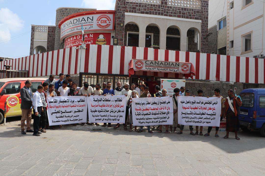عدن تشهد وقفة تضامنية لرد الاعتبار للروضة الكندية الدولية إزاء ما تعرضت له من محاولة تشويه