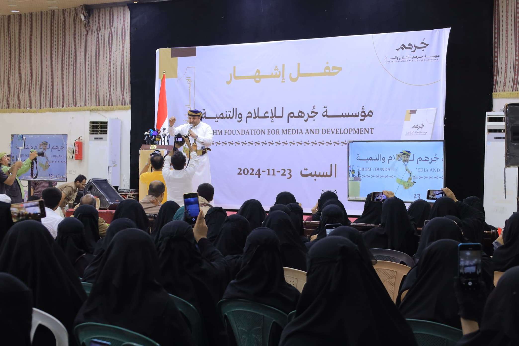 أُعلن اليوم في مدينة مأرب عن إشهار مؤسسة جرهم للإعلام والتنمية. وفي حفل الإشهار، الذي حضره عدد من الشخصيات الثقافية والإعلامية والاجتماعية، أوضح نائب مدير المؤسسة، مازن الشوكي، أن "جرهم" تسعى لتقديم محتوى مميز وموثوق عبر قنوات متعددة، تشمل الصحافة المطبوعة والرقمية، بالإضافة إلى وسائل الإعلام الاجتماعية. كما أشار إلى أن المؤسسة تهدف إلى تعزيز الوعي الثقافي والاجتماعي في المجتمع من خلال نشر الأخبار والمقالات التي تواكب تطورات العصر وتلبي احتياجات الجمهور في مختلف المجالات. وفي كلمة المؤسسين، للشيخ مراد بن محسن بن معيلي، ألقاها نيابة عنه قائد علي جردان، أكد أن "جرهم" هي مؤسسة إعلامية تنموية مستقلة، لا تتبع أي أحزاب أو جهات سياسية، ولا تتعصب لأي مكونات طائفية أو مناطقية، بل تهدف إلى خدمة الجميع ونشر ثقافة السلام والتنمية. وأضاف: "يأتي إشهار مؤسسة جرهم في وقت تخوض فيه القبيلة اليمنية معركة فكرية وثقافية وحضارية، بهدف الإعلاء من قيمة الإنسان في مواجهة الفكر الكهنوتي والعنصري السلالي، الذي يتنافى مع العقل والقانون والشريعة". وأردف بن معيلي: "نأمل أن تشارك المؤسسة بشكل فعّال في توصيل الفكر المنير إلى المجتمع، وأن تكون إحدى منارات العلم والمعرفة والبناء الفكري الحضاري في مأرب خاصة، وفي اليمن عموماً". وأضاف قائلاً: "نتطلع من خلال هذه المؤسسة إلى أن تكون إحدى وسائل القبيلة اليمنية في هذه المعركة الفكرية الثقافية، وأن تساهم في العمل مع الجميع من أجل تنمية إنسانية تقضي على الجهل والتحزب، لبناء الحاضر والمستقبل". وعن مكتب المرأه بمحافظة مأرب القيت كلمة عن المرأة ألقتها “منيرة الورافي”، وفي الحفل تم عرض ريبورتاج تعريفي بالمؤسسة، كما قدمت عدد من الفقرات الفنية للمنشدين اسامه صلاح واحمد عبدالخالق، ووصلة فنية شعبية لفرقة خنجرر يماني، مع قصيدة شعرية للشاعر فؤاد متاش. وقدم الفنان الكوميدي محمد الحاوري فقرة ختامية لاقت استحسان الجميع. حضر الحفل مدير عام الهيئة العامة للكتاب بمحافظة مأرب ومدير مكتب الشباب برئاسة الوزراء ومدير عام مكتب الثقافة بأمانة العاصمة ومدير مكتب الشباب بأمانة العاصمة وعدد من الوجاهات والشخصيات الإعلامية والٱجتماعية والفكرية.