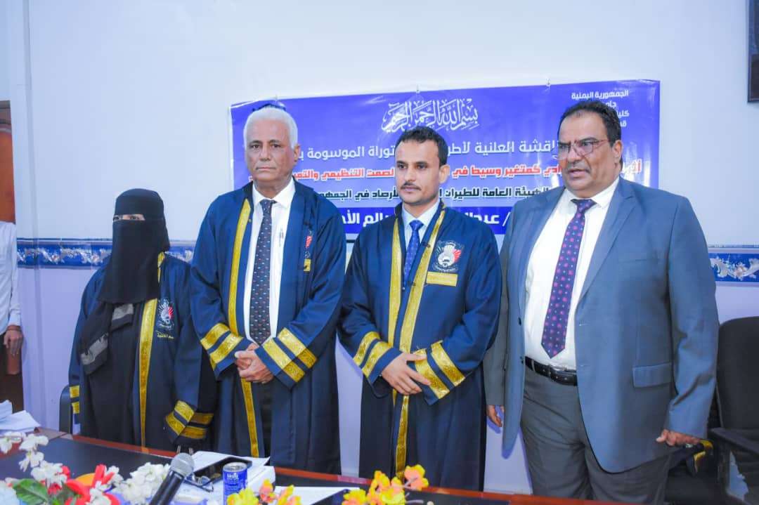 منحت جامعة عدن ممثلة بكلية العلوم الإرارية - قسم إدارة الأعمال صباح اليوم الخميس درجة الدكتوراة بامتياز في إدارة الأعمال للباحث/ عبدالناصر علي الاحمدي، حيث نوقشت اطروحته الموسومة بـ: "أثر السلوك القيادي كمتغير وسيط في العلاقة بين الصمت التنظيمي والتميز المنظمي: دراسة حالة الهيئة العامة للطيران المدني والأرصاد في الجمهورية اليمنية". في رحاب كلية العلوم الإدارية، وفي مستهل المناقشة العلمية استعرض الباحث/ عبدالناصر علي الأحمدي ملخصًا لأطروحته، تطرق من خلاله إلى المنهجية العلمية التي اتبعها في إعداد الأطروحة، وإلى بنيتها من فصول وأبحاث، وكذا التوصيات والاستنتاجات التي خرجت بها دراسته، بالإضافة إلى الصعوبات التي واجهها أثناء عملية البحث ودراسة الحالة. وقد أقرت لجنة المناقشة والحُكم برئاسة الأستاذ الدكتور/ هاني سالمين بلعفير المناقش الخارجي من جامعة حضرموت، والذي مثله الأستاذ مشارك الدكتور/ رنا سالم صالح، وعضوية الأستاذ مشارك الدكتور/ عبدالرحمن سالم اللحجي مناقشًا داخليًا، والأستاذ مشارك الدكتور/ صالح عمرو الجريري مشرفًا علميًا، قبول الأطروحه ومنح الباحث/عبدالناصر الأحمدي درجة الدكتوراة في إدارة الأعمال، مثمنين الجهود الكبيرة التي بذلها الباحث في أطروحته العلمية ونتائجها، والتي تستدعي العمل بها وأخذها بعين الاعتبار من قبل الهيئة المعنية، واصفين الرسالة بأنها من الرسائل المميزة التي تستهدف تطوير المؤسسات في اليمن، والتي سيستفيد منها الباحثين والمكتبات الجامعية، وقد هدفت أطروحة الباحث الأحمدي إلى إبراز أثر الصمت التنظيمي من الدور الوسيط للسلوك القيادي في تحقيق التميز المنظمي، وإلى التعرف إلى مدى توافر متغيرات الدراسة الصمت التنظيمي والسلوك القيادي، والتميز المنظمي في الهيئة العامة للطيران المدني والأرصاد، بالاعتماد على المنهجين الوصفي والتحليلي، والتطبيق الميداني في الهيئة العامة للطيران المدني والأرصاد في عدن. وشهدت المناقشة العلمية حضورًا متميزًا من قيادة وزارة النقل يتقدمهم القبطان/علي الصبحي - وكيل الوزارة لقطاع الشؤون البحرية والموانئ، والأستاذ/ بسام المفلحي - مدير عام مكتب وزير النقل، وقيادة هيئة الطيران المدني يتقدمهم المهندس/ محمد ناشر طاهر - وكيل هيئة الطيران، وعدد من الوكلاء المساعدين لقطاعات الهيئة، ومدير عام مطار عدن الدولي، وعدد من مدراء العموم في وزارة النقل وهيئة الطيران، والأستاذ/ حميد عبدالله الكربي - وكيل وزارة الثروة السمكية، وعدد كبير من المسؤولين في مختلف المؤسسات الحكومية وزملاء وأقارب الباحث، وعددٍ من الباحثين وطلاب الدراسات العليا، الجدير بالذكر أن الباحث/ عبدالناصر علي الأحمدي يعد من الكوادر الإدارية المتميزة بالهيئة العامة للطيران المدني والأرصاد بعدن، ومن الشخصيات التي تحظى باحترام واسع، وله عديد من الإنجازات والبصمات الإدارية المشهود لها في الهيئة.