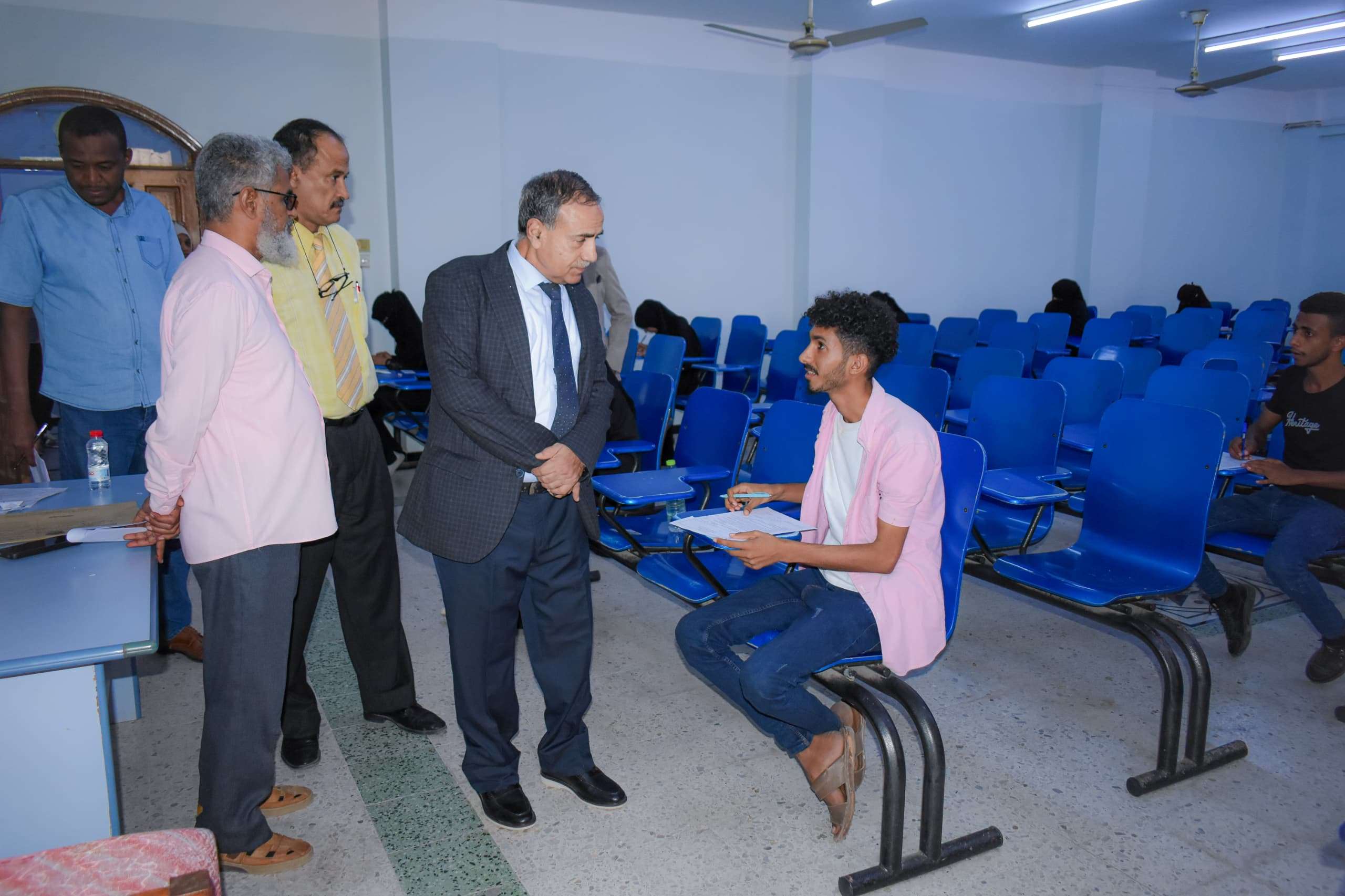 رئيس جامعة عدن يتفقد سير امتحانات الفصل الأول بكلية الصيدلة