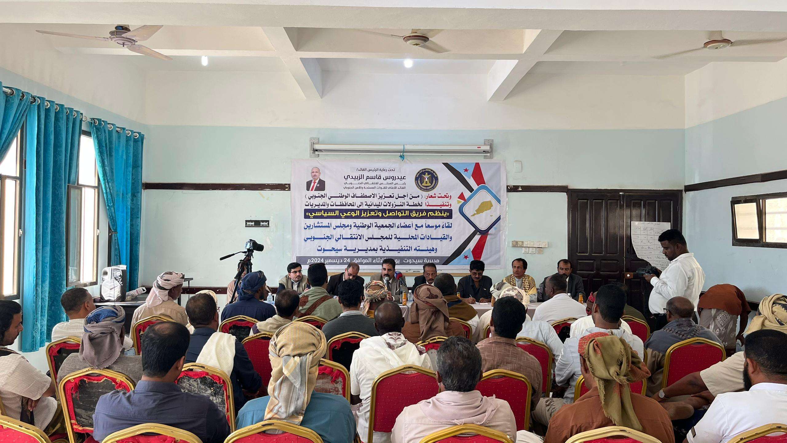 في إطار برنامج النزولات الميدانية بمحافظة المهرة، عقد فريق التواصل وتعزيز الوعي السياسي، المكلف بالنزول الميداني إلى مديريات المحافظة، اجتماعاً موسعاً مع أعضاء الجمعية الوطنية، مجلس المستشارين، والهيئة التنفيذية للمجلس الانتقالي الجنوبي في مديرية سيحوت . افتتح اللقاء الدكتور سالم علي القميري ، عضو هيئة الرئاسة ورئيس فريق التواصل، مرحباً بالحضور ومقدماً شرحاً موجزاً عن مهام الفريق ، وأكد أن هذه المهام تأتي تنفيذا لتوجيهات الرئيس القائد عيدروس الزُبيدي، وتهدف إلى رفع مستوى التوعية السياسية وتحذير المواطنين من المخاطر التي تهدد وعيهم الجماهيري . من جانبه، شدد العميد علي أحمد الجبواني ، عضو هيئة الرئاسة، على أهمية النزولات الميدانية لمتابعة أداء الهيئات التنفيذية ، وتعزيز التنسيق والعمل الجماعي لتحقيق أهداف المجلس ، وأوضح أن هذه النزولات تعزز الوعي السياسي وتتيح الفرصة للتواصل المباشر مع القواعد الشعبية . وأشاد مجاهد بن عفرار بالدور المحوري لهذه الزيارات في تعزيز الوعي السياسي ومواكبة التطورات الإقليمية والدولية المتعلقة بقضية شعب الجنوب، مستعرضاً النشاطات الميدانية واللقاءات التي نفذها الفريق خلال الفترة الماضية . كما استعرض العميد ناجي العربي نائب رئيس الهيئة العسكرية بالجمعية الوطنية عضو الفريق ، الأوضاع العسكرية والأمنية في الجنوب ، الإنجازات المحققة وأهمية وحدة الصف الجنوبي لمواجهة التحديات . كما تناول الأستاذ عيسى رعفيت رئيس كتلة المهرة بالجمعية الوطنية ، المسار السياسي الداخلي ، مسلطًا الضوء على أبعاد الشراكة في السلطات القائمة ودورها في تحسين أوضاع المواطنين الجنوبيين . وفي بداية اللقاء ، قام الأستاذ علي جمعان عويض، رئيس الهيئة التنفيذية بمديرية سيحوت، بالترحيب بالحاضرين ، وقد استعرض أبرز المعوقات والصعوبات التي تواجه سير العمل في المديرية، مسلطًا الضوء على التحديات التي تعيق تحقيق الأهداف المرجوة، ومؤكدًا على أهمية التعاون المشترك لإيجاد حلول فعالة لهذه التحديات. يُذكر أن برنامج النزولات الميدانية يهدف إلى تعزيز التواصل بين القيادة المركزية والمحلية، والاطلاع على أوضاع المحافظات الجنوبية ، بما يسهم في تلبية تطلعات المواطنين وتحقيق الأهداف الوطنية للمجلس الانتقالي الجنوبي .