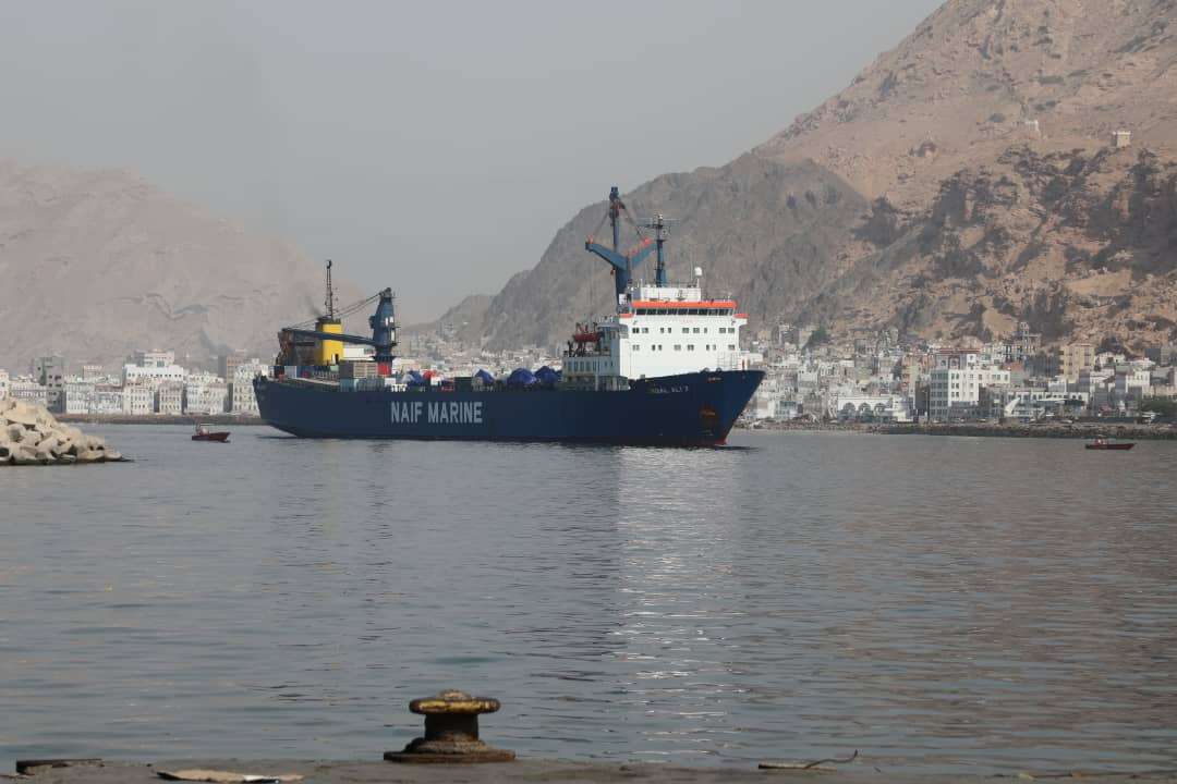 وصول سفينة إماراتية إلى ميناء المكلا تحمل مساعدات غذائية وأدوات مدرسية لأهالي حضرموت