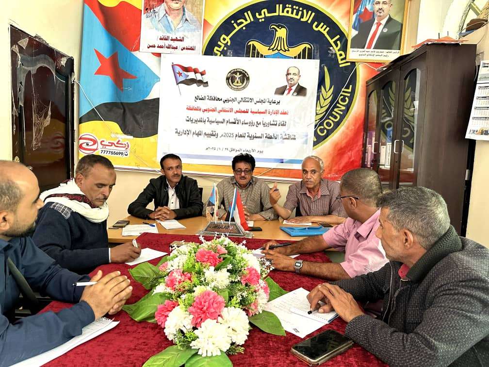 انتقالي الضالع يعقد لقاء تشاورياً مع رؤساء الأقسام السياسية