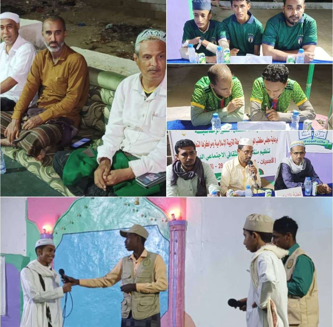 أكمل فريق النصر مساء أمس الجمعة، عقد المتأهلين إلى نهائي المسابقة الثقافية في نسختها الثامنة والعشرين، التي ينظمها منتدى أحور الثقافي، ضمن فعالياته وأنشطته الرمضانية، برعاية مجلس مكتب الموجه العام لأربطة التربية الإسلامية. تأهل فريق النصر لحسابات المجموعة الثالثة، على حساب نظيره فريق الاتحاد، فيما تغيب فريق شباب المجد عن الحضور. وكانت نتائج الجولة الأولى (الإسلاميات) لصالح فريق الاتحاد، الذي تغلب على النصر بحصده "ثلاثون درجة"، في حين حصل فريق النصر على "عشرين درجة". وفي الجولة الثانية (المعلومات العامة) تفوق النصر بحصوله على "عشرين درجة"، بينما حصد الاتحاد "خمسة عشر درجة"، استمر تفوق النصر في الجولة الثالثة (الرياضة) برصيد "عشرين درجة"، وأكتفى نظيره الاتحاد بعشر درجات. وبهذا تأهل النصر بمجموع "ستين درجة"، وغادر الاتحاد باجمالي "خمس وخمسين درجة". وتخلل فعاليات المسابقة الثقافية سحوبات على ملابس رياضية مقدمة من منتدى أحور، وكروت شبكة واي فاي مقدمة من شبكة نيو ماكس، وتم تقديم أسئلة للمجمهور نالت استحسان وتفاعل الجماهير الحاضرة، قدمت فيها العديد من الجوائز العينية.
