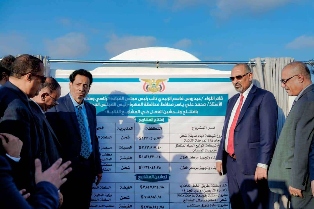 الرئيس الزُبيدي يفتتح ويدشن العمل في عدد من المشاريع الخدمية بمحافظة المهرة