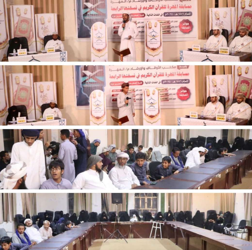 برعاية الشيخ راجح سعيد باكريت، وتنظيم مكتب الأوقاف والإرشاد بالمحافظة، دُشنت مساء السبت النسخة الرابعة لمسابقة المهرة للقرآن الكريم، والتي تستهدف نخبة من الحافظين لكتاب الله على فئات مختلفة. وفي التدشين اعرب نائب مدير مكتب الأوقاف والإرشاد الدكتور محمد الشاوش عن شكره للشيخ راجح سعيد باكريت على رعايته المتواصلة ودعم هذه المسابقة القرآنية للنسخة الرابعة.. موضحاً بأن المسابقة تستهدف 91 مشاركاً ومشاركة من فئة ( المصحف كاملاً وفئة عشرين جزءاً. ) وأضاف الشاوش أن المكتب الأوقاف والإرشاد يولي اهتماما كبيرا لإقامة مثل هذه المسابقات القرآنية، بهدف تحفيز الشباب والجيل الصاعد على حفظ القرآن الكريم والاهتمام به وتعزيز روح التنافس في حفظه. وقدم نائب مدير الاوقاف جزيل الشكر والتقدير للشيخ راجح باكريت على رعايته لمسابقة المهرة للقرآن الكريم بشكل سنوي واهتمامه المستمر.. داعياً الله ان يبارك بجهوده ويجزيه خير الجزاء. من جانبه ألقى الأستاذ عيسى بن نهل القميري كلمة نقل فيها تحيات الشيخ راجح سعيد باكريت للحاضرين، مؤكداً على أهمية إقامة مثل هذه المسابقات التي تهدف إلى تشجيع الشباب على تعليم وحفظ القرآن الكريم . وأشاد القميري في جهود مكتب الأوقاف والإرشاد وكذلك اللجنة المنظمة لهذه المسابقة،،، داعياً إلى تعزيز ونشر القيم الإسلامية السامية في أوساط المجتمع.
