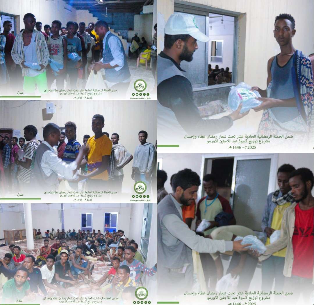 مؤسسة الهجرة توزع كسوة عيد الفطر لأكثر من 400 شخص من اللاجئين الأورمو بالعاصمة عدن