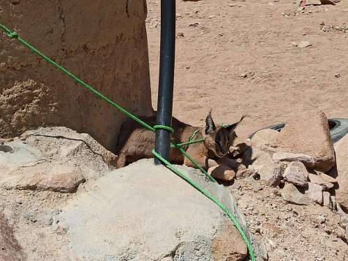 صورانقاذ حيوان "الوشق العربي" من الغرق في أحد آبار صعيد شبوة