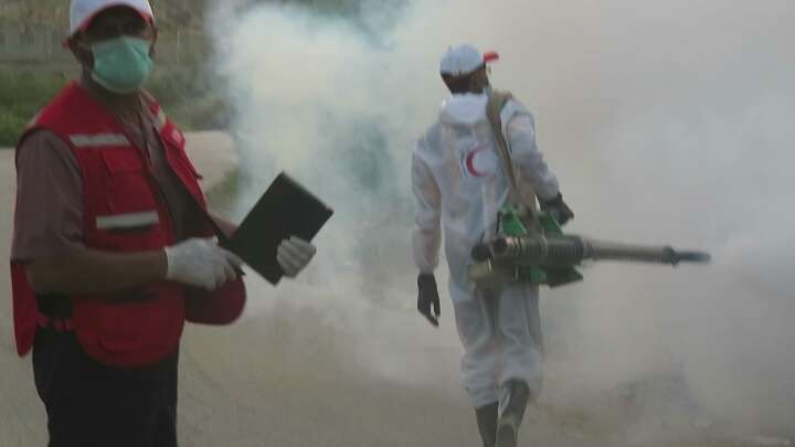 يواصل فريق جمعية الهلال الأحمر اليمني فرع شبوة و بالتنسيق مع مكتب الصحة والسكان في المحافظة ومديرية بيحان حملة مكافحة وباء "حمى الضنك" التي قد بداءت يوم السبت الماضي وقد استهدفت الحملة 50% من المناطق المسهدفة حسب الخطة المقدمة من مكتب الصحة بمديرية بيحان والتي تنفذها فرق مختصة في التخلص من مصادر العدوى وازلة البؤر وردم المستنقعات والتوعية والتثقيف الصحي والرش الضبابي والجدير بذكرة بان هذة الحملة تاتي ضمن مشروع الاستجابة الطارئة و الشركاء الداعمين لمشروع دريف ل حمى الضنك ضمن مشروع DREF=008 بدعم من الاتحاد الدولي لجمعيات الصليب الاحمر والهلال الاحمر ،
