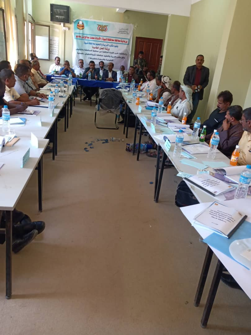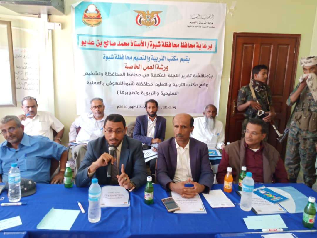 وكيل محافظة شبوة يدشن ورشة العمل الخاصة بمناقشة تطوير العملية التعليمية والتربوية بالمحافظة